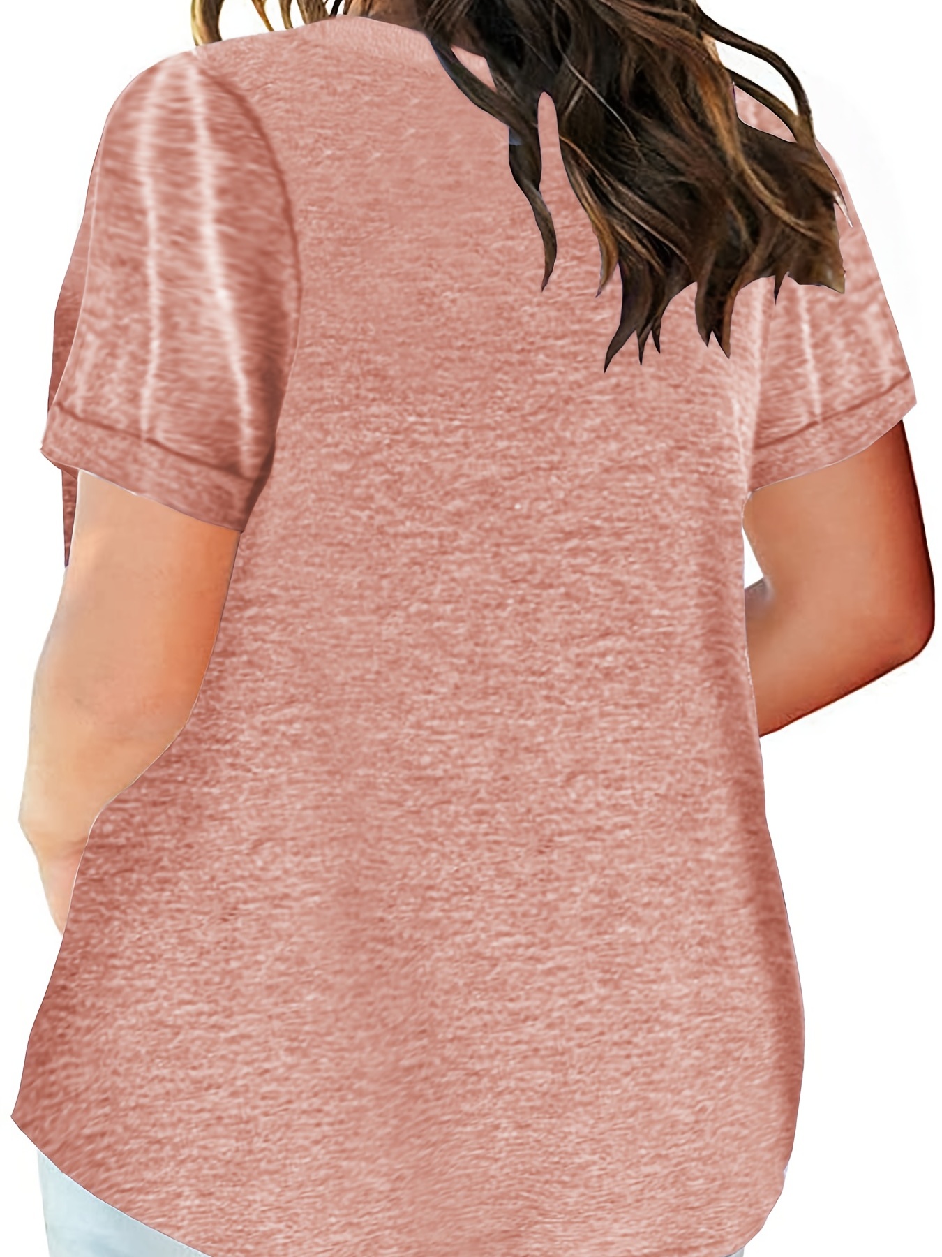 • Plus Size Button Front Short Sleeve T-shirt, Women's Plus Slight Stretch Casual Tee