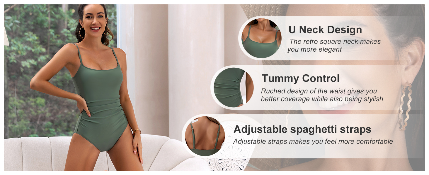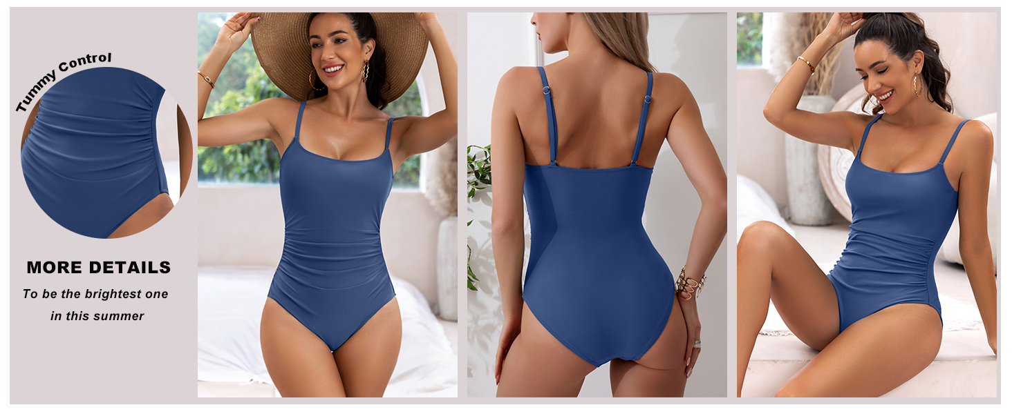 Women's Tummy Control Ruched One Piece Swimsuits